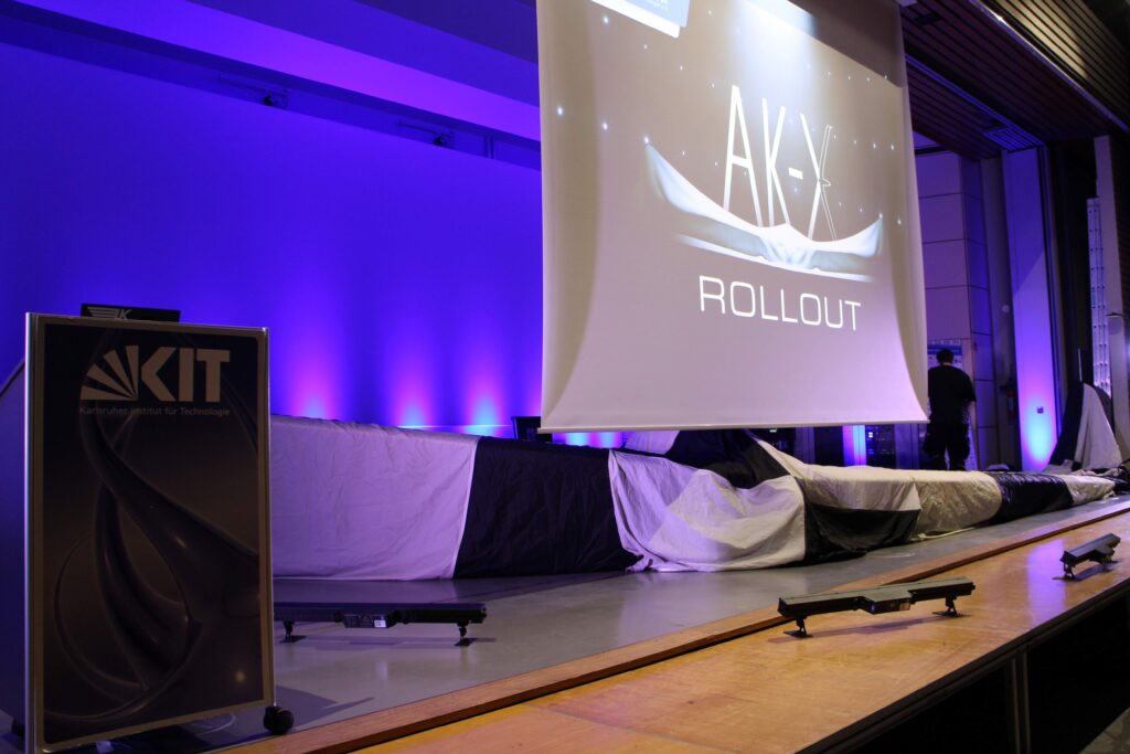 Neben der AK-X stand an diesem Abend auch das neue Projekt der Akaflieg Karlsruhe, die AK-11, im Rampenlicht. Das Nachfolgeprojekt der AK-X wurde im Rahmen des Programms präsentiert und die Besonderheiten der Neuentwicklung sowie des innovativen Konzepts vorgestellt. Die über 700 Gäste konnten im Anschluss einen Einblick in die Herausforderungen und Meilensteine des AK-X-Projekts durch unsere aktuellen und ehemaligen Projektleiter erhalten. Den Höhepunkt des Abends stellte schließlich die Enthüllung der AK-X dar.